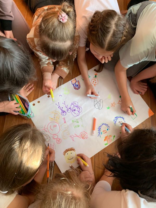 17.01.2023 г 2 день недели психологии начальная школа нарисовали рисунки на ватмане на тему "Рисуем радость общения"