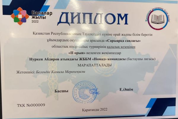 Қазақстан Республикасының Тәуелсіздігі күніне орай жалпы білім беретін ұйымдардың оқушылары арасында "Сарыарқа саңлағы" облыстық пікір—сайыс турнирінің қалалық кезеңінде мектебімізді…