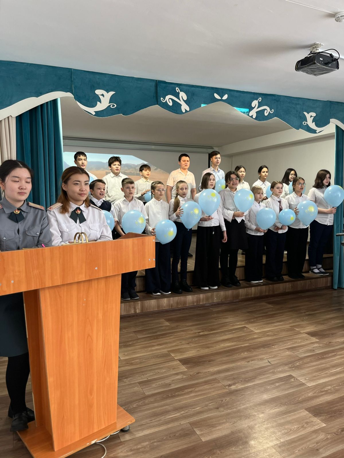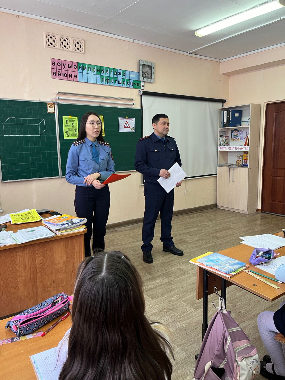 Қарағанды ​​облысы бойынша БЖДБ қызметкері полиция майоры Мешелов Р.Б. Қарағанды ​​қаласы ОКҚ БАИ ҒПО-мен бірге полиция капитаны М.С.Сатанова. «Нұркен Әбдіров атындағы жалпы орта мектебі»…