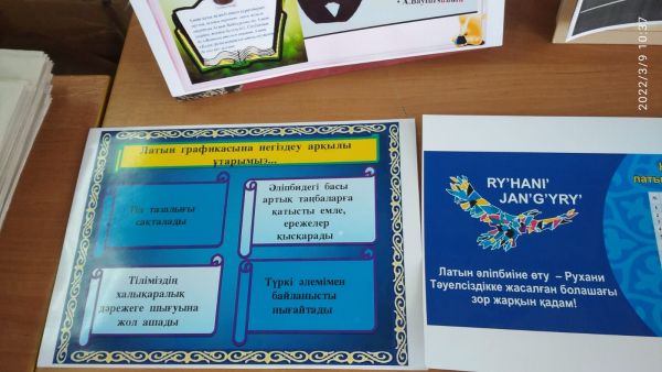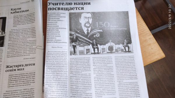 Для учащихся 6-8 классов в школьной библиотеке проведён цикл мероприятий в рамках празднования 150-летия со дня рождения Ахмета Байтурсынова: куглый стол "Тіл білімінің алтын діңгегі", биб…