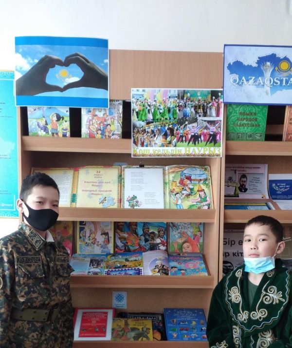 14.03.2022 г. в школьной библиотеке организована книжно-иллюстративная выставка "Қош келдің, Наурыз!"