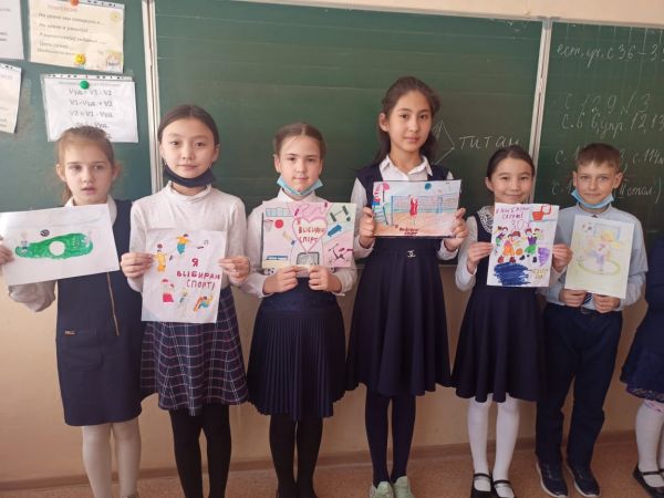 Ученики 4 В класса приняли участие в конкурсе рисунков "Я выбираю спорт!" кл.рук. Лисицына С.М
