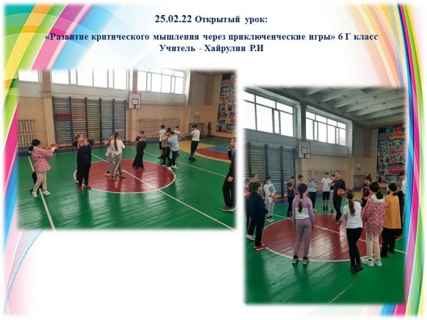25.02.22 В 6 Г классе в рамках недели спорта учитель ФК Хайрулин Р.И провел открытый урок «Развитие критического мышления через приключенческие игры».