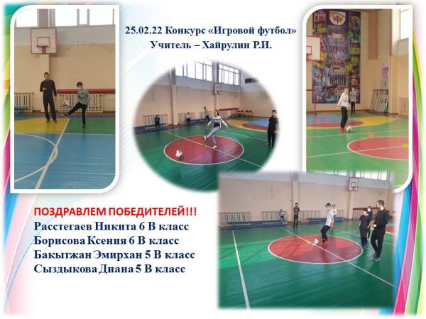 25.02.22 В рамках Недели спорта учитель ФК Хайрулин Р.И провел конкурс «Игровой футбол».