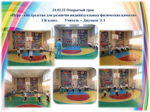 24.02.22 В рамках недели спорта учитель ФК Джумаев Э.Э провел открытый урок «Игра - как средство для развития индивидуальных физических качеств» в 1 Б классе.