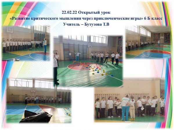 В рамках Недели спорта учитель ФК Бутузова Т.В провела открытый урок в 6 "Б "классе. Тема урока «Развитие критического мышления через приключенческие игры»