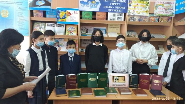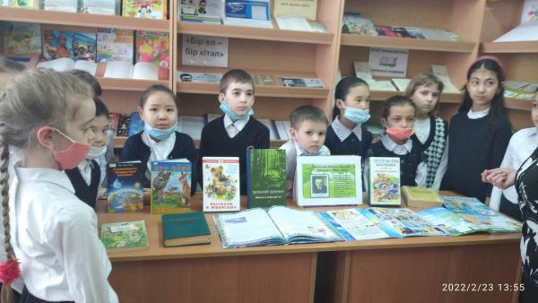 К 100-летию со дня рождения народного писателя Республики Казахстан Сафуана Шаймерденова, в школьной библиотеке для учащихся 7 Ә класса проведены беседа и обзор литературы.
