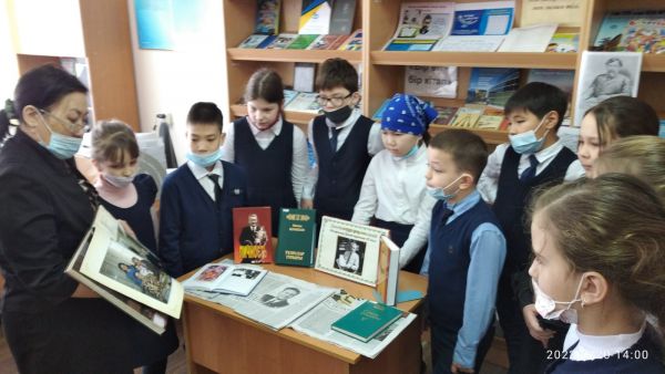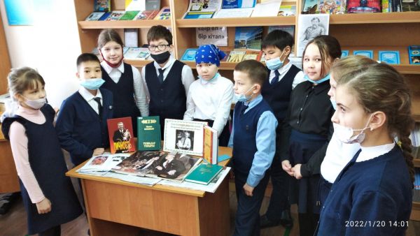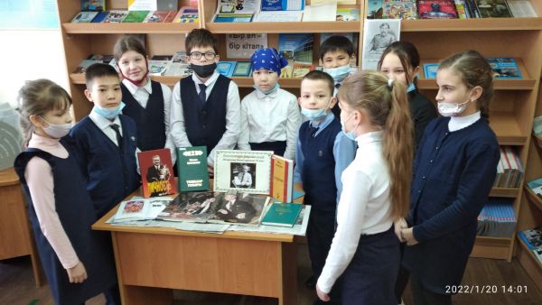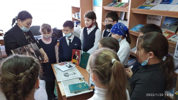 В школьной библиотеке, для учящихся 4-х классов проведен «Час истории» (Д. А. Кунаев, человек-эпоха)