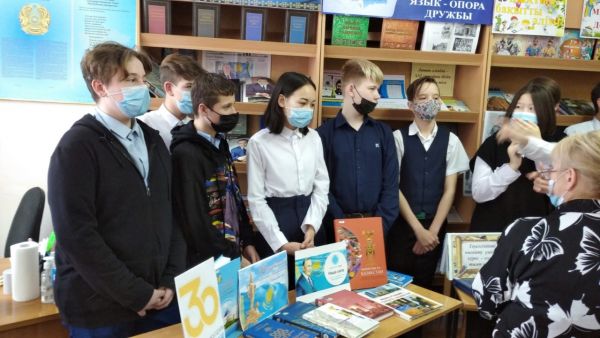 9.12.21 г. В школьной библиотеке для учащихся старших классов проведен обзор литературы «Менің Отаным - тәуелсіз Қазақстан!», посвящённый Дню Независимости РК.