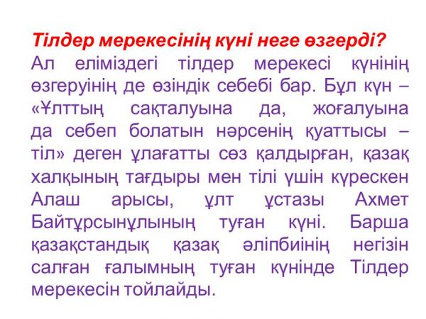 2020 жылы 23 қыркүйек айында мектебіміздің 10А сынып оқушысы Минбаева Нурдана "Ана тілім - ардағым" тақырыбына презентация дайындады