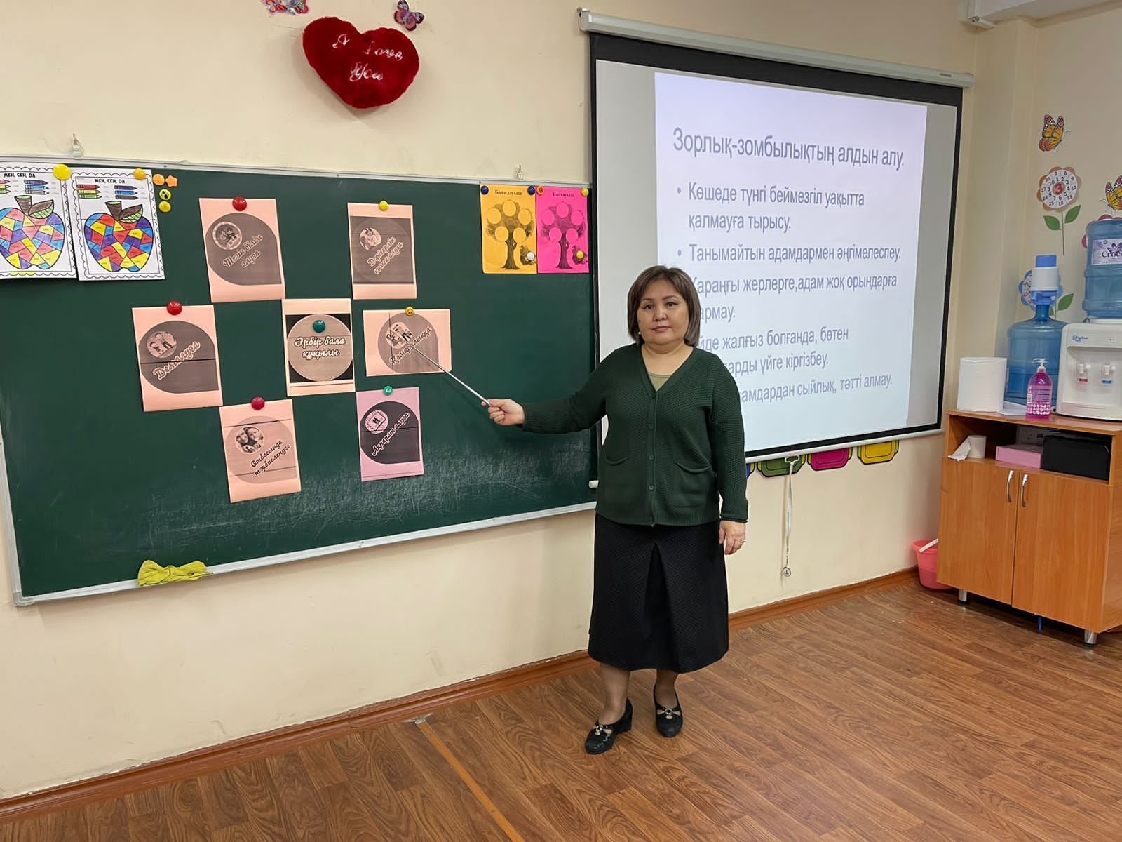 Нүркен Әдбіров атындағы жалпы білім беретін мектепте «Aта-аналарды педогогикалық қолдау орталығы» жобасы аясында қараша айының 6 күні 7 Ә сыныбында Арапбаева Ділмираның анасы Лола