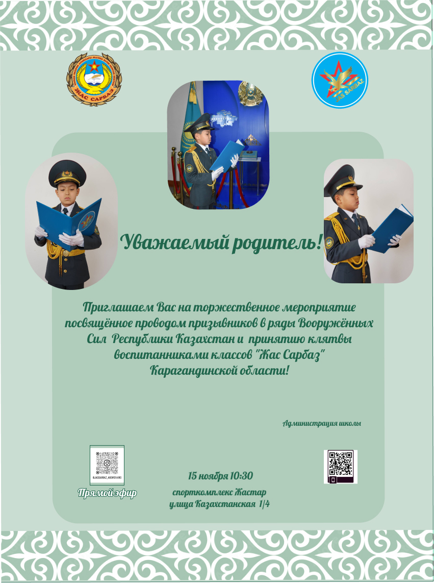 Сізді Қазақстан Республикасы Қарулы Күштері қатарына Қарағанды облысынан Отан алдындағы борышын өтеу үшін әскер қатарына шақырылушыларды шығарып салу және облыстық деңгейде “Жас Сарбаз”…