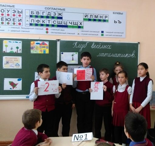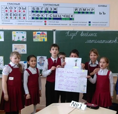 28 января учителем начальных классов Кислицыной И. В. в 4 В классе проведено внеклассное мероприятие "Клуб веселых математиков"