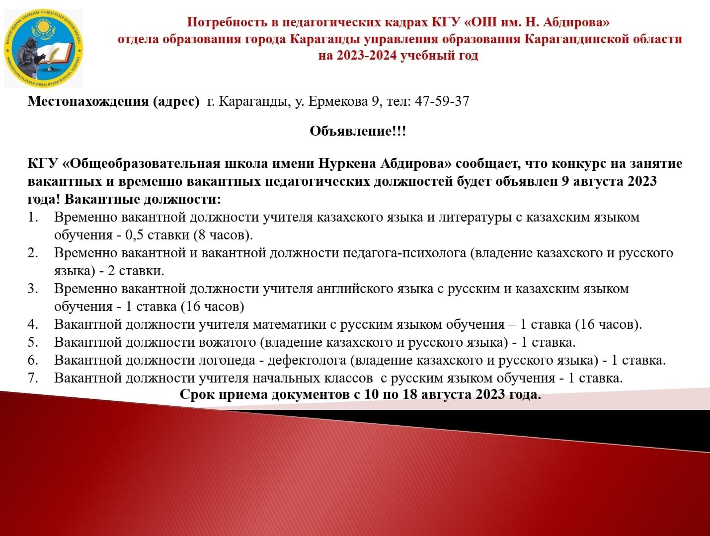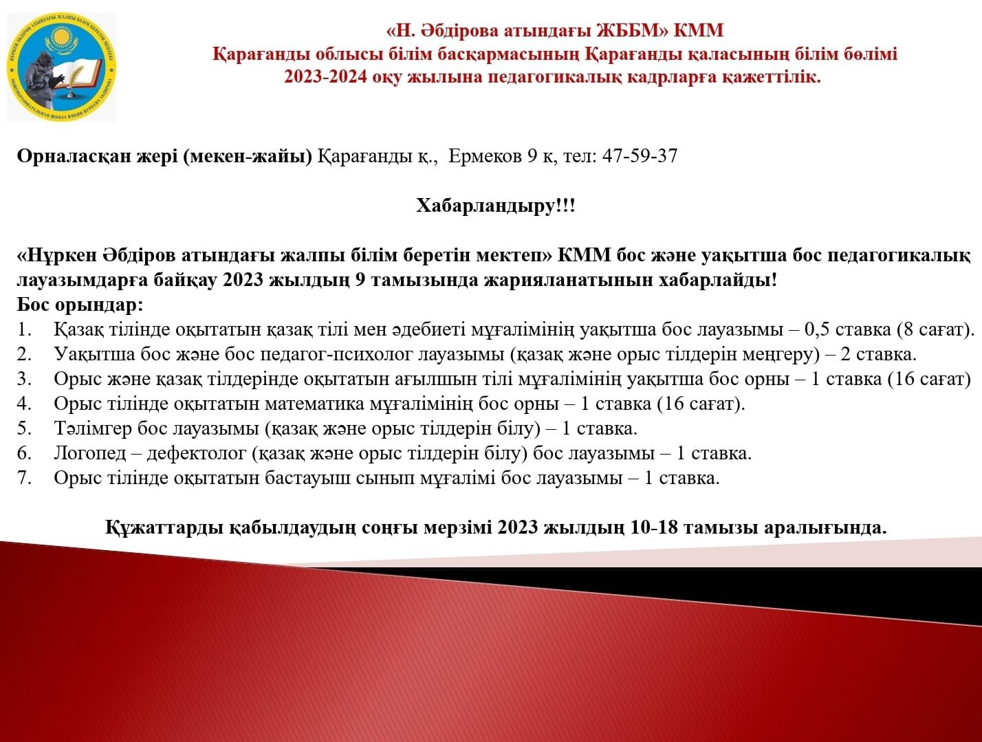 16.06.2023 жылы Қарағанды қаласының « Нұркен Әбдіров ЖББМ» 9 сыныптар арсында «Сәт сапар,саған, Жас түлек! атты түлектердің аттестат беріу салтанатты жиыны…