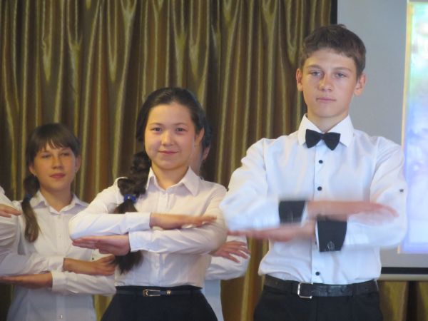 На очередной школьной линейке во второй смене, учащиеся 3 В класса подготовили выступление на тему "18 октября - День духовного согласия".