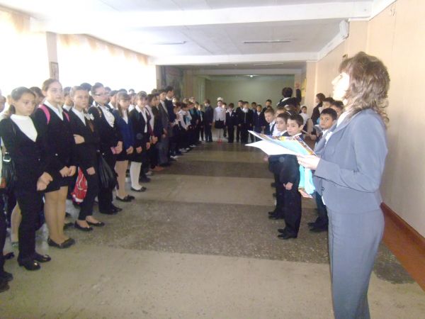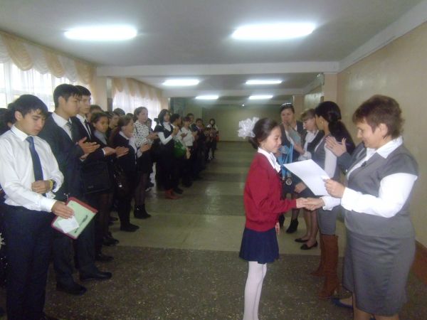 На очередной линейке директором школы Балгабековой Т. В. вручены грамоты и медали ученикам 7-х и 8-х классов, занявшим призовые места на городском легкоатлетическом конкурсе.
