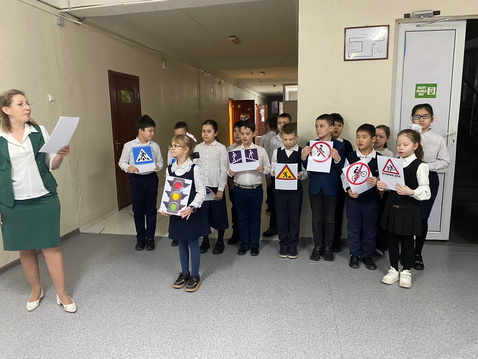 Учащиеся младших классов провели школьное собрание на темы «Уважай друга», «Будем соблюдать правила дорожного движения», «Уважение к национальному символу», &laqu…