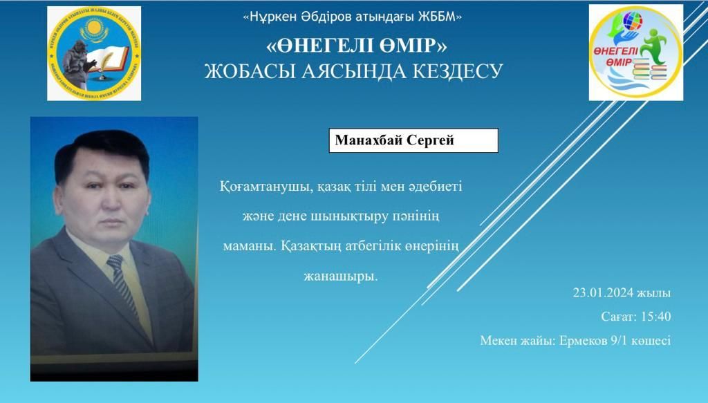 23 января 2024 года в рамках проекта «Особенная жизнь» в общеобразовательной школе «Нуркен Абдиров» в 8 «Д» классе состоялась встреча с Манахбаем Сергеем, сторонн…