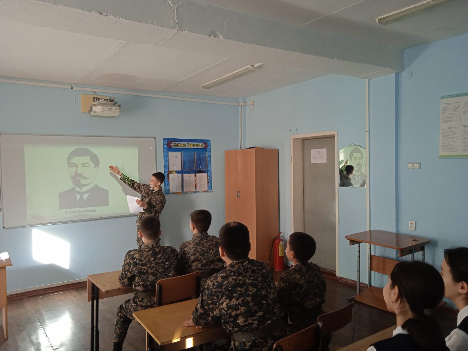 20 ноября 2023 года в КГУ «ОШ имени Н.Абдирова» в 10-ых классах в рамках патриотической декады прошел классный час на тему «Алаш Айлығы»