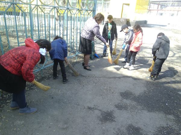 Сегодня ученики и учителя СОШ№58 дружно взялись за работу по уборке территории. Особенно тщательно убрали территорию корта и спортивных тренажеров.