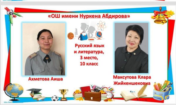 Поздравляем победителей городского этапа республиканской олимпиады школьников.По русскому языку и литературе Ахметова Аиша-ученица 10 "А" класса,Тусупова Анель-ученица 11"Б" клас…
