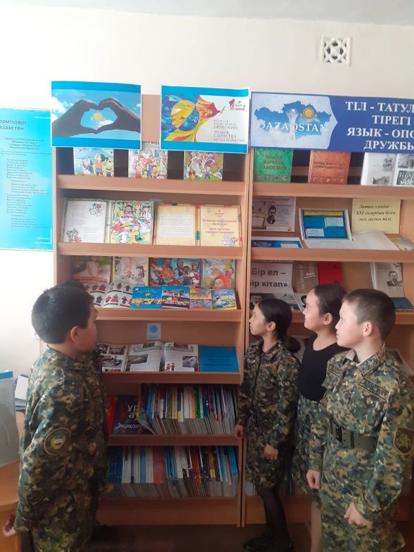 В школьной библиотеке для учащихся 4-8 классов проведен информационно – познавательный час, посвященный Дню единства народа Казахстана.