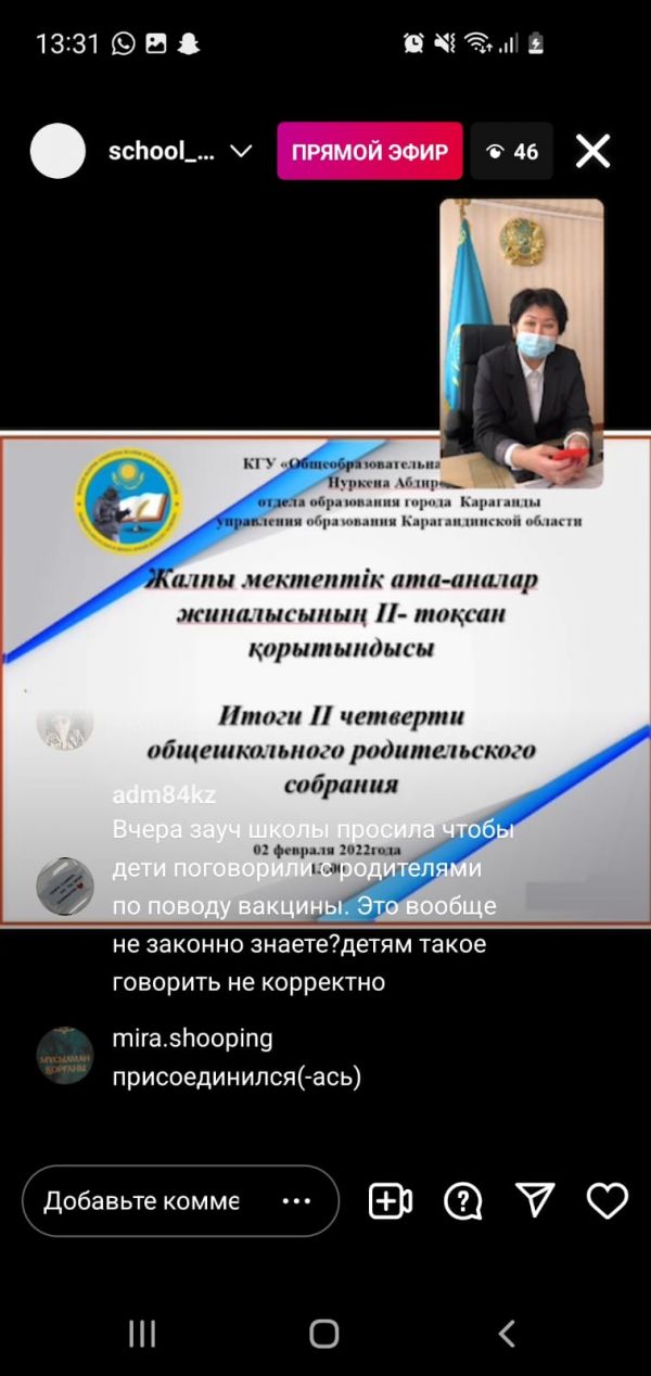 Сегодня прошло общешкольное родительское собрание по итогом 2й четверти. Была дана информация об успеваемости, воспитательной работе и вакцинации детей
