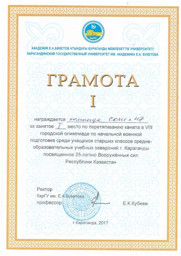 20 қаңтарда Қарағанды қаласы мектептерінің жоғары сынып оқушылары арасында ҚарМУ-де АӘД бойынша қалалық олимпиада өтті. Олимпиада ҚР Қарулы күштерінің 25-жылдығына арналды. Біздің мекте…