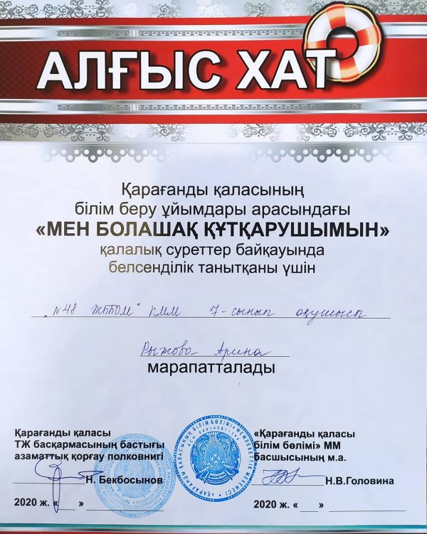 Участник интеллектуального марафона "Ак бота",ученик 4 "Б"класса Маканалин Руслан за занявшее 3-место,награждён Дипломом 3-ой степени.