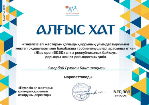 "Жас өрен - 2020" атты республикалық байқауы