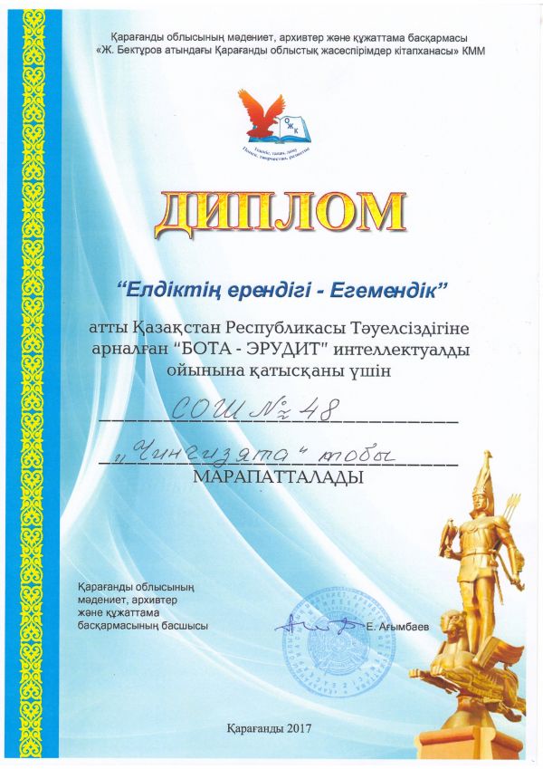 Қазақстан Республикасының Тәуелсіздік күнімен құттықтаймыз және біз күн сайын еліміз гүлдене түсуін тілейміз. Сізге Отаныңда бақытты өмір, бастарыңызға бейбіт аспан, халықтың есте сақтайтын дәстүрле…