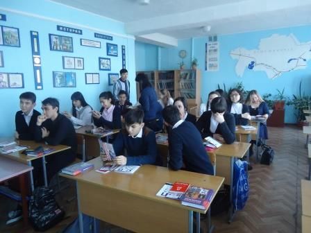 Жаңа жыл қарсаңында 8 Б сынып оқушылары тақырыптық лездеме дайындап келді. Оқушылар техника қауіпсіздігіне көп назар аударды. Тақпақтар мен өлендер айтты.