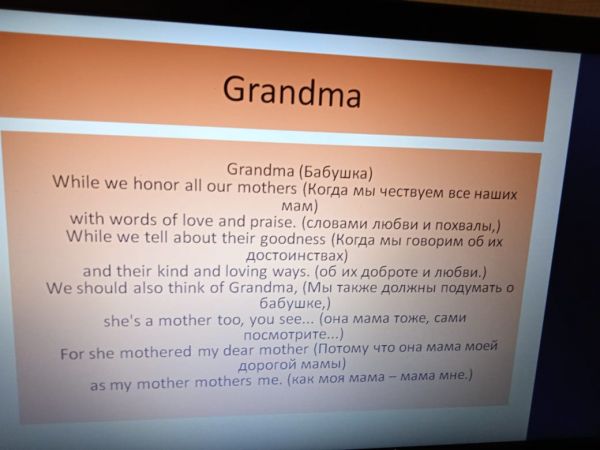 Учащиеся с большим интересом и желанием читали стихи на английском языке посвященные маме, бабушке, семье, природе. После чтения стихов отметили как важна для каждого человека любовь к родным и близ…