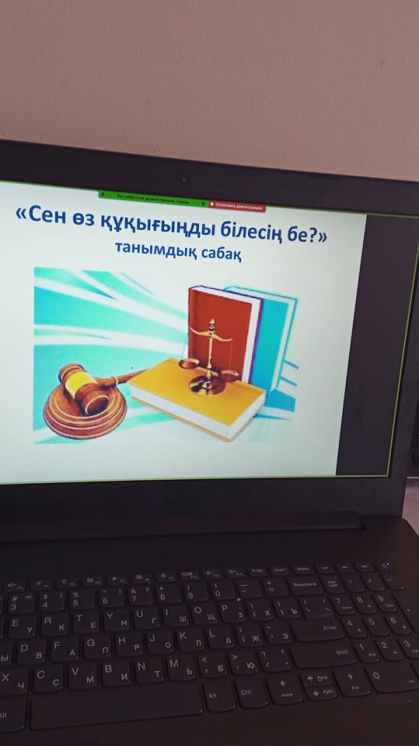 10.02.21күні тарих пәні мұғалімі: Солтанбеков Ж. М. 6-сыныппен "Өз құқығыңды білесің бе?" атты оқушылардың құқықтық білімдерін дамыту мақсатында танымдық сабақ өткізді.
