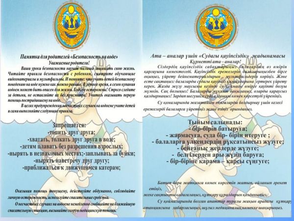 Ата-аналар үшін "Судағы қауіпсіздік" жадынамасы