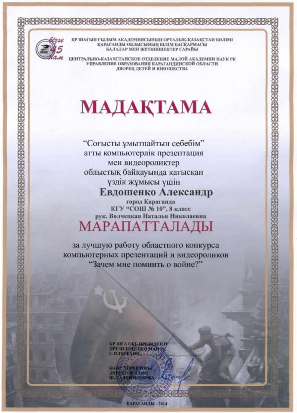 Ұлы Отан соғысының жеңісіне 70 жыл!