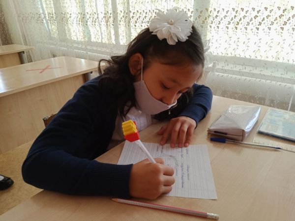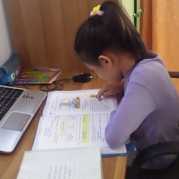 3ә-сыныбындағы қашықтан оқитын оқушылар күнделікті тапсырмаларды орындауда.