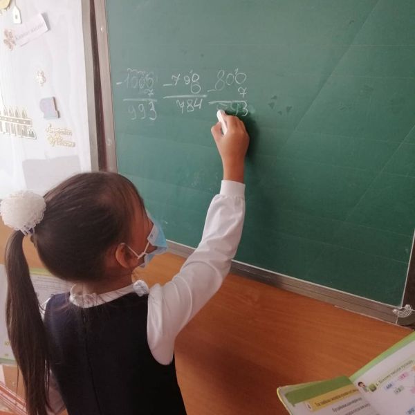 3ә-кезекші сыныбында математика пәні бойынша "Үш таңбалы сандарды ауызша қосу және азайту" тақырыбында есептер шығарылды.