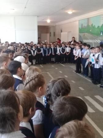 27 октября, в последний день 1 четверти . учащиеся 2-б и 4-б классов провели тематическую линейку для учащихся начальной школы « Правила поведения на улице и дома»