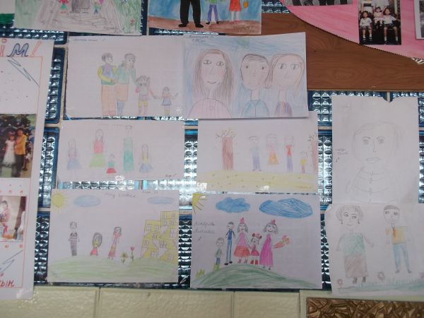В нашей школе среди учащихся начального и среднего звена прошел конкурс рисунков, посвященные празднику День семьи.