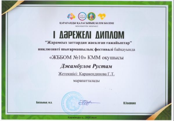 С нашей школы приняли участие в городском Фестивале инклюзивного творчества "Чудеса из ненужных вещей"двое учащихся и получили призовые места: