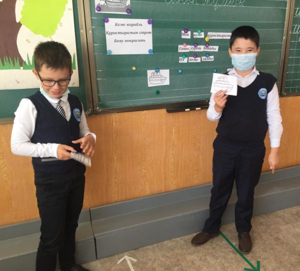 Бүгін 2"Б" кезекші сыныбыныда қазақ тілінен "Мен кеме құрастырамын" тақырыбында сабақ өтті.