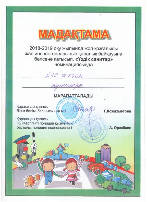 В КГУ СОШ 58 состоялся городской конкурс ЮИДД, в данном крнкурсе КГУ СОШ 10 заняло 1-место. ПОЗДРАВЛЯЕМ !