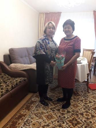 5 "А" класс вместе с классным руководителем посетили ветерана Есенжолову Зилифу Мусилимовну и поздравили с Днем учителя.