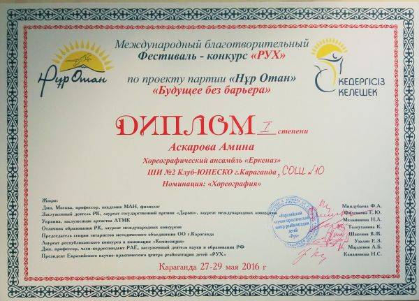 25 мамыр 2016 жылы соңғы қоңырау 11 сыныптар арналған жиыын болып өтті. 11 А  сыныптың жетекшісі Айтмагамбетова Тазагуль Бархатовна 11Б сынып жетекшісі Доскожина Галина Латыповна