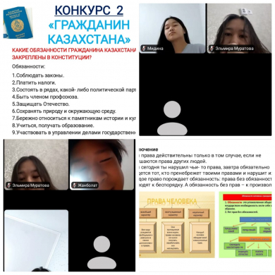08.02.2022 г. Махатова Ж.Т. в рамках Недели правовой грамотности провела конкурс знатоков права в 8в классе. Звание лучших знатоков права получили Абдрахманова А, Зинченко К, Алёшина Я., Муратова Э.