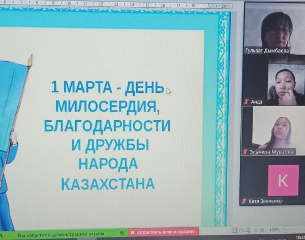 1.03.2021. в 7 «В» классе был проведён онлайн классный час, на тему: «1 марта – День благодарности». Классный руководитель: Дымбаева Г.К.