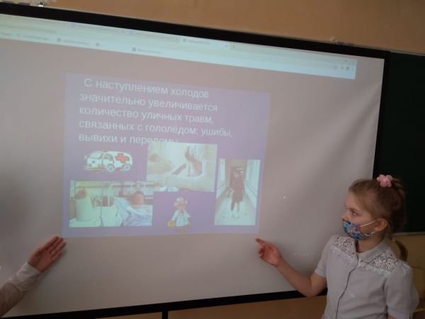 22.02.21. в 7 "В" классе был проведен онлайн классный час , на тему "Осторожно, гололед"