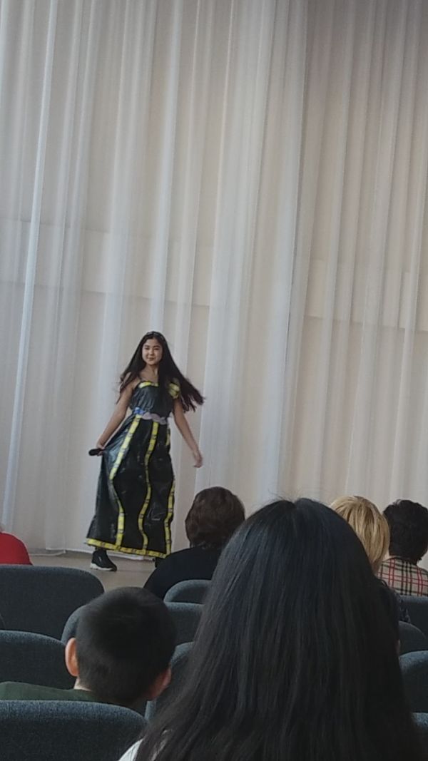26 қаңтар 2019 жылэкологиялық сайыс "ЭкоChallenge"», 8 "В" сынып оқушылары "V қайта өңдеу" акциясында, "Экомода"дефилінде.