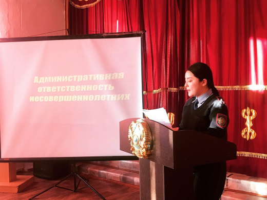 Құқықбұзушылықты алдын-алу айлығы аясында Жаңа-Майқұдық ПБ-нің инспекторы Өмірзақ Т.Қ. “Ю.Н.Павлов атындағы ЖББМ” КММ оқушыларымен “Кәмелетке толмағандардың әкімшілік және қылмы…